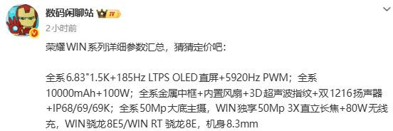 太平洋科技快讯】12 月 24 日音书,荣耀 WIN 系列将 于12 月 26 日发布,该系列现时已在官方商城开启预订,提供快开黑、指定赢和不怕蓝三种配色。