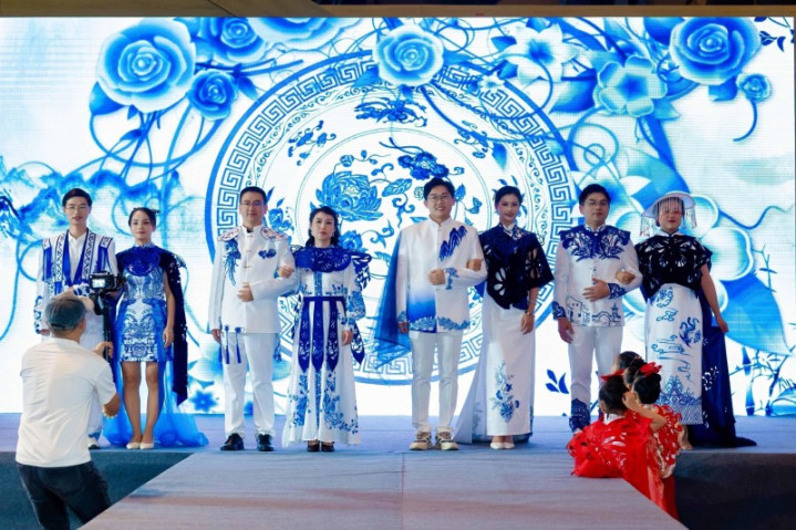 青花忆剪:模仿青花瓷的蓝白配色与纹样,用剪纸镂空工艺收复传统好意思学;走秀中,模特身着剪纸遮挡的西装、旗袍、驯顺等衣饰,让非遗从“纸上”跃入“衣上”,取得现场阵阵掌声。