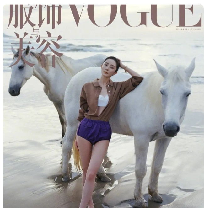 杨幂登VOGUE开年封, 沙滩大片解释极致高等感