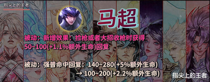 安逸了对战工夫的强度,加强了战后的续航,但总体而言,回血部分安逸真不大,马超的输出简直是绑定捡枪和收枪的看成,中后期简直没影响,反而跑路经过不错回血,倒是加强了。